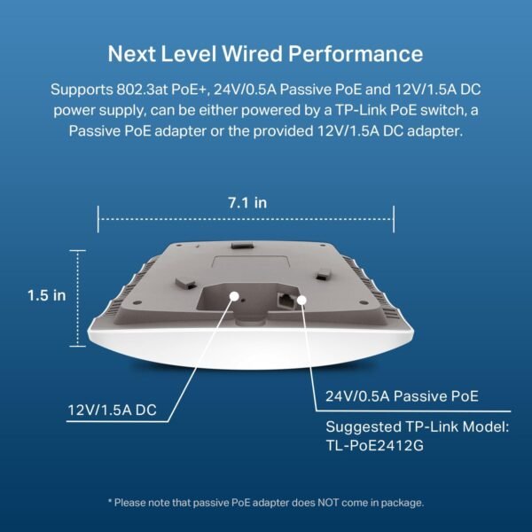 No adapter is included—this unit is PoE-compatible for flexible, clutter-free installations using your existing network infrastructure. Whether you’re expanding coverage or building a scalable WiFi solution, the TP-Link EAP223 ensures fast, secure, and uninterrupted wireless access.